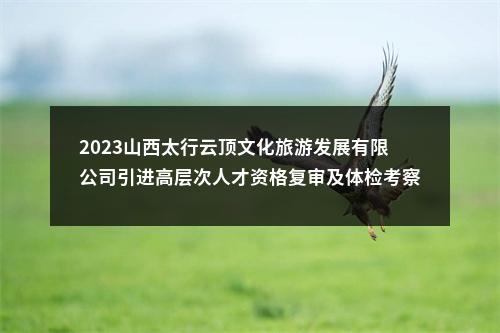 原标题:山西太行云顶文化旅游发展有限公司2023年公开引进高层次人才资格复审及体检、考察公告